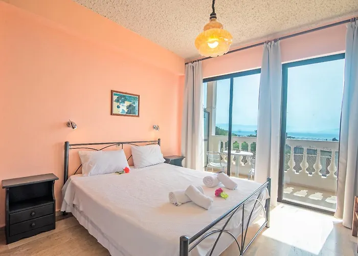 Andromaches Apartment Sea View Achílleion, di 35 m^2, si trova a 2 km dall'Isola di Mouse e offre strutture termali come una piscina all'aperto. C'è i Pontikonissi a 3 km dall'appartamento.